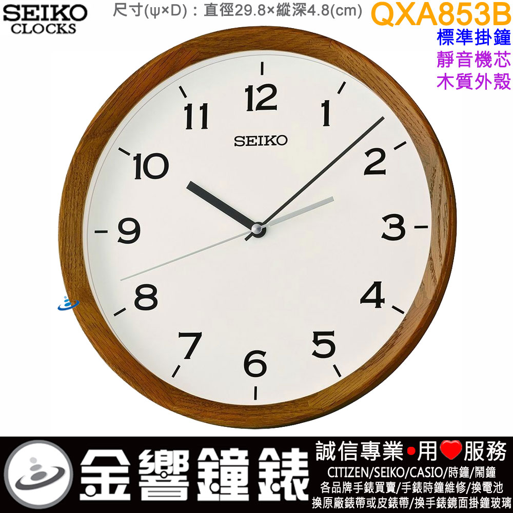 dot ●金響鐘錶,現貨,SEIKO QXA853B(公司貨,保固1年):::SEIKO時尚掛鐘,靜音機芯,木質外殼,直徑29.8cm,時鐘,QXA-853B