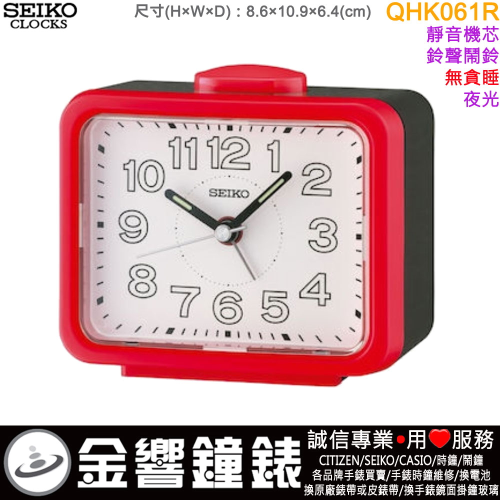 金響鐘錶精品購物網::專賣原廠公司貨:::歡迎議價或門市購買全年優惠 EST.1995 » 時鐘系列 » 鬧鐘 Alarm-Clocks » 指針型鬧鐘(滑動式秒針) » ●金響鐘錶,現貨,SEIKO QHK061R(公司貨,保固1年):::SEIKO,鈴聲鬧鈴,靜音機芯,無貪睡,夜光,QHK-061R |