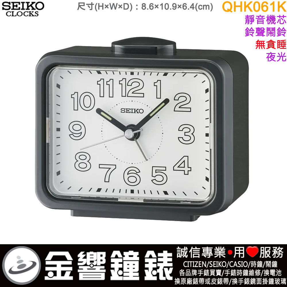 dot ●金響鐘錶,現貨,SEIKO QHK061K(公司貨,保固1年):::SEIKO,鈴聲鬧鈴,靜音機芯,無貪睡,夜光,QHK-061K