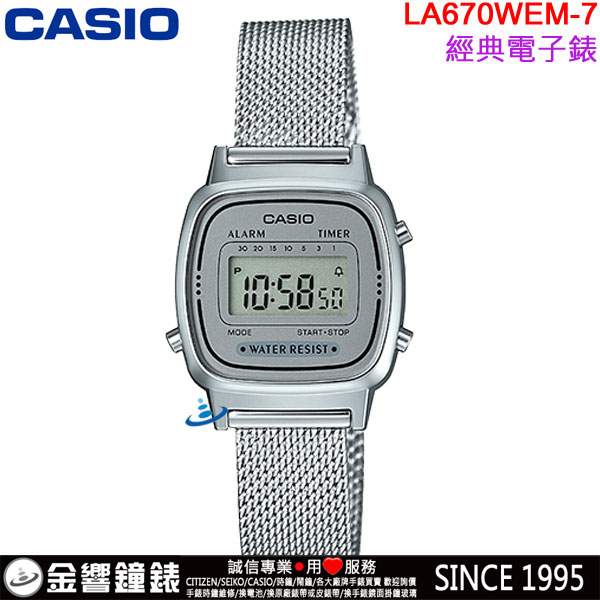 dot 金響鐘錶精品購物網::專賣原廠公司貨:::歡迎議價或門市購買全年優惠 EST.1995 » CASIO系列 » FASHION 時尚錶款 » 【金響鐘錶】預購,CASIO LA670WEM-7DF(公司貨,保固1年):::復古數字型電子錶,1/10秒碼表,倒數計時器,鬧鈴,LA-670WEM