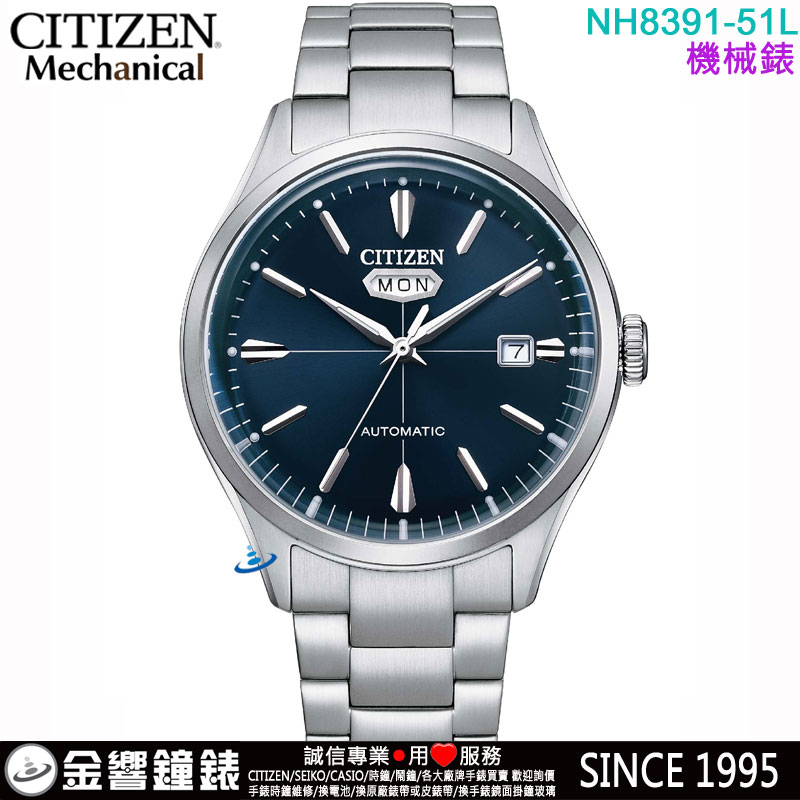 金響鐘錶精品購物網::專賣原廠公司貨:::歡迎議價或門市購買全年優惠 EST.1995 » CITIZEN系列 » Mechanical 機械錶 » 【金響鐘錶】現貨,CITIZEN NH8391-51L(公司貨,保固2年):::CITIZEN C7,機械錶款,自動上鍊,星期日期,8200機芯,NH839151L |