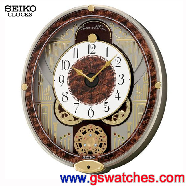 Melodies in Motion clocks come to life on the hour with moving figurines, sparkling lights and high fidelity sound. By combining sound, motion and light, these clocks are a delight to watch each and every day. Re-launched for 2009, Seiko's unique collection of Melodies in Motion clocks is ideal for children's bedrooms and family rooms.